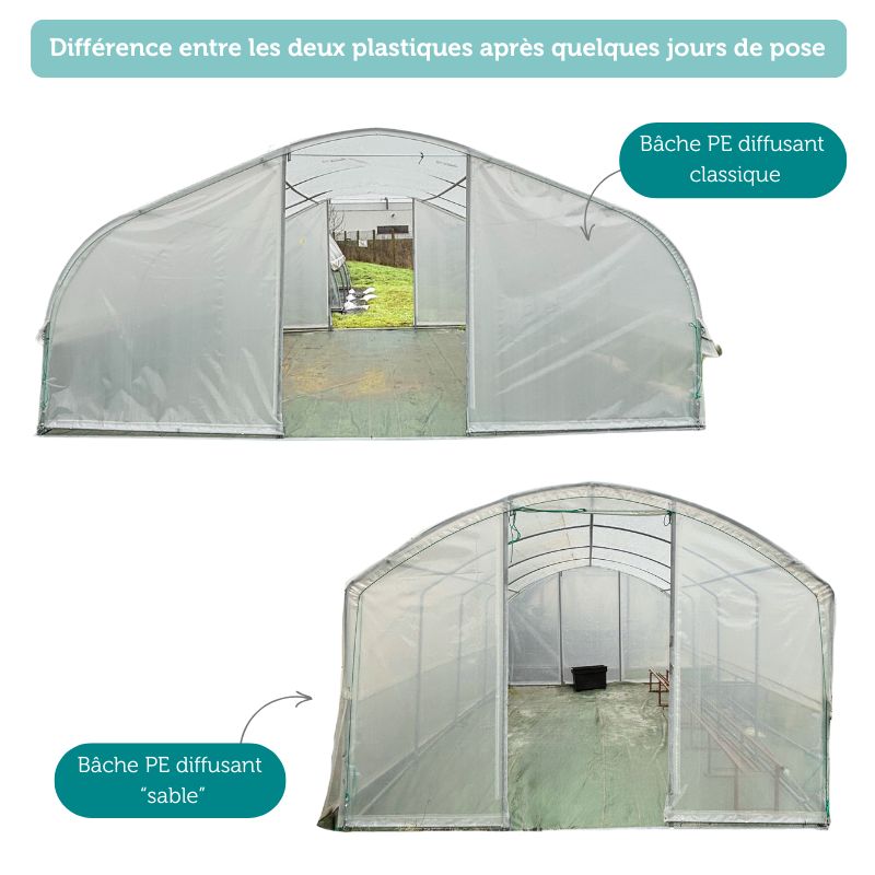Remplacez l’avant et l’arrière de votre serre Jardinière (larg. 3 m) avec ce pack comprenant housses de porte, demi-lunes et dessus de portes. Film polyéthylène diffusant "sable" 200 microns. Performance thermique et petit prix réunis.
